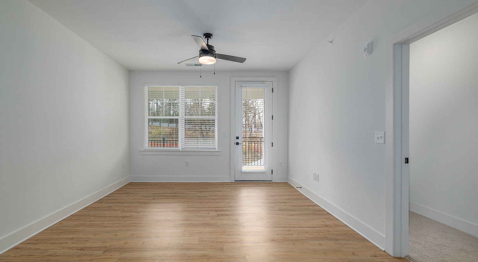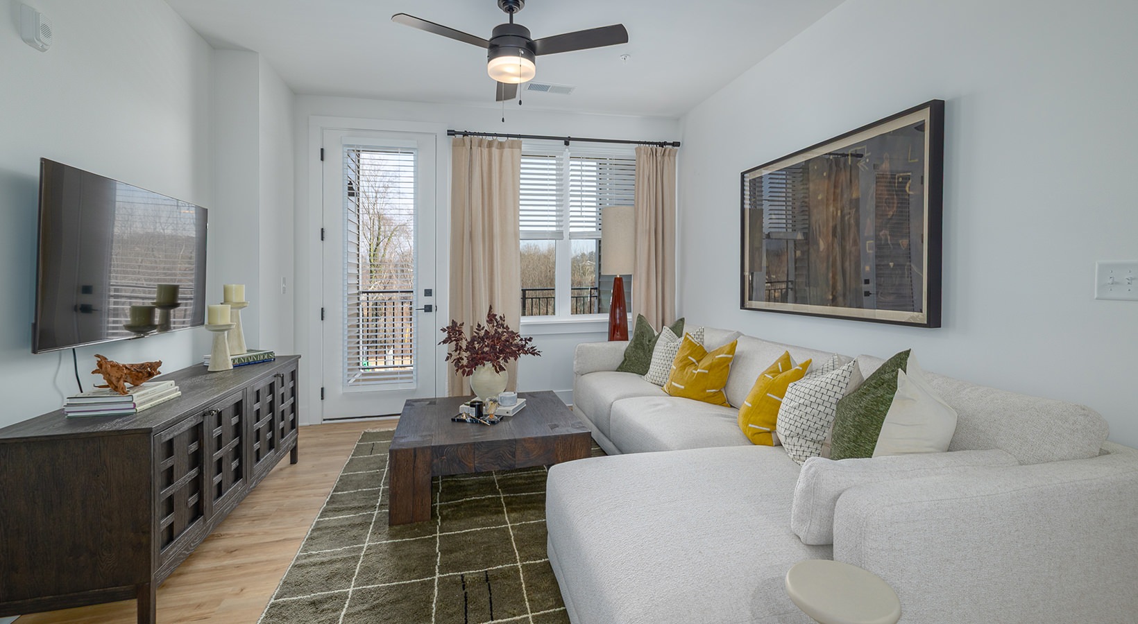 • a living room with a large glass door