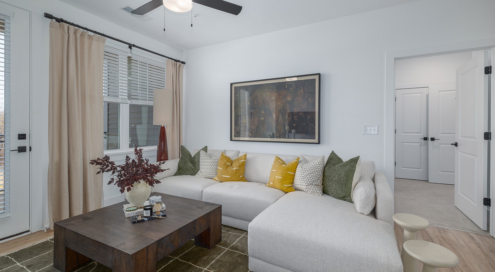 • a living room with a couch and a table